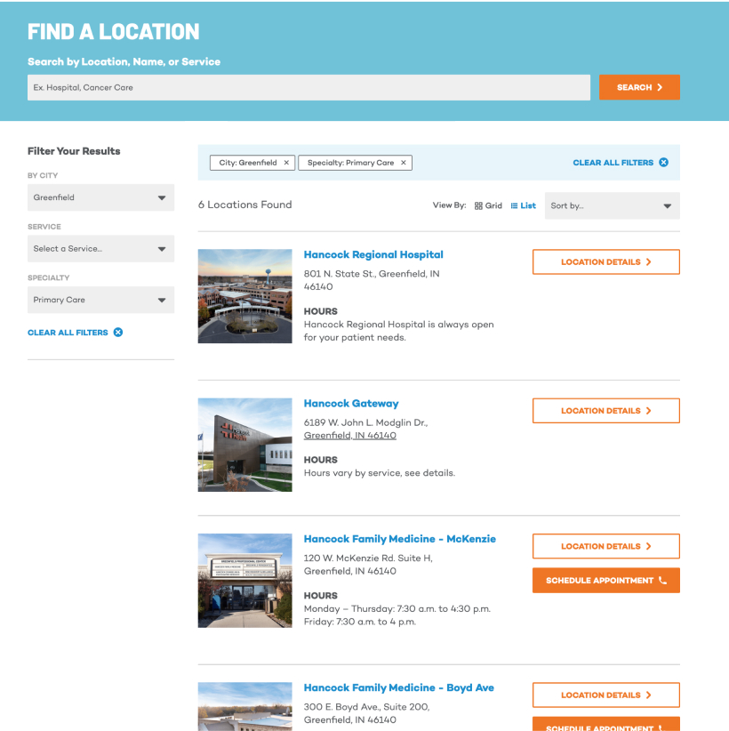 We saw an opportunity to unify Hancock Health’s online brand and help them achieve their business goals by combining all 13 of their websites into one, providing an efficient, intuitive, welcoming experience for all. So that’s what we did.