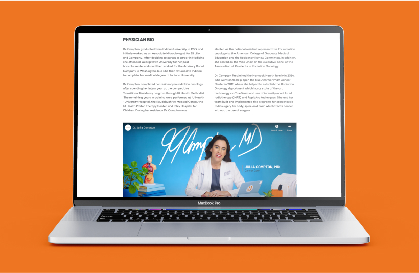 We also made sure the new site’s content was visually and tonally consistent with actually visiting a Hancock Health facility. This made the entire brand stronger and better aligned, as we matched the real-life experience—including common visual identifiers you might see out in the community—to what people experience on the website. Ultimately, the most rewarding thing we did was connect people throughout East Central Indiana with the doctors, information, and other healthcare resources they need to live their healthiest lives.